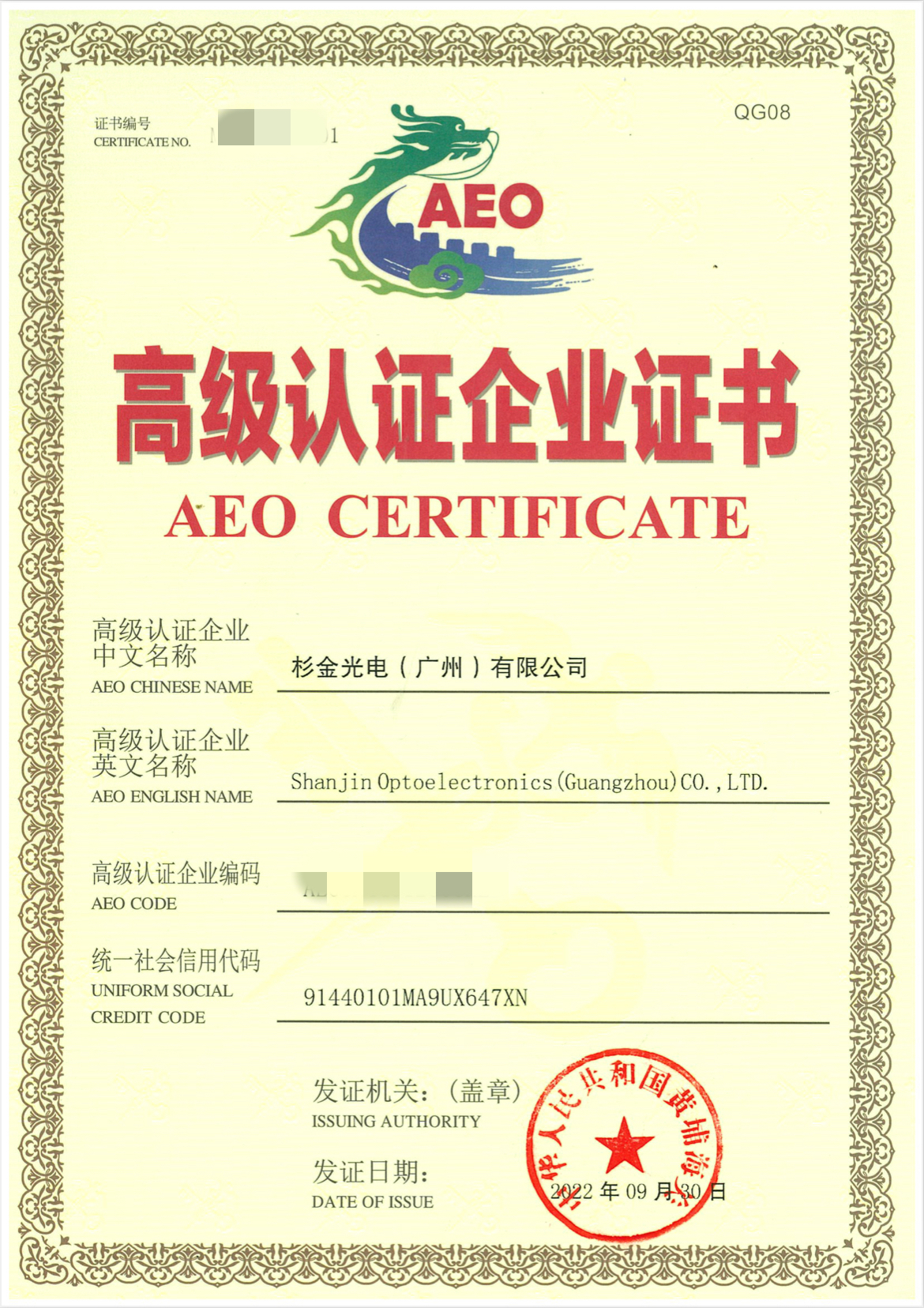 廣州法人自2022年3月起,經(jīng)過黃埔海關(guān)企業(yè)管理處及蘿崗海關(guān)認證中心悉心指導與法人全體員工積極籌備,在海關(guān)的敬業(yè)及高效的工作環(huán)境下,使我司自8月4日申請后60日內(nèi)于2022年9月30日獲得黃埔海關(guān)頒發(fā)的AEO(Authorized Economic Operator,經(jīng)認證的經(jīng)營者)高級認證企業(yè)證書。