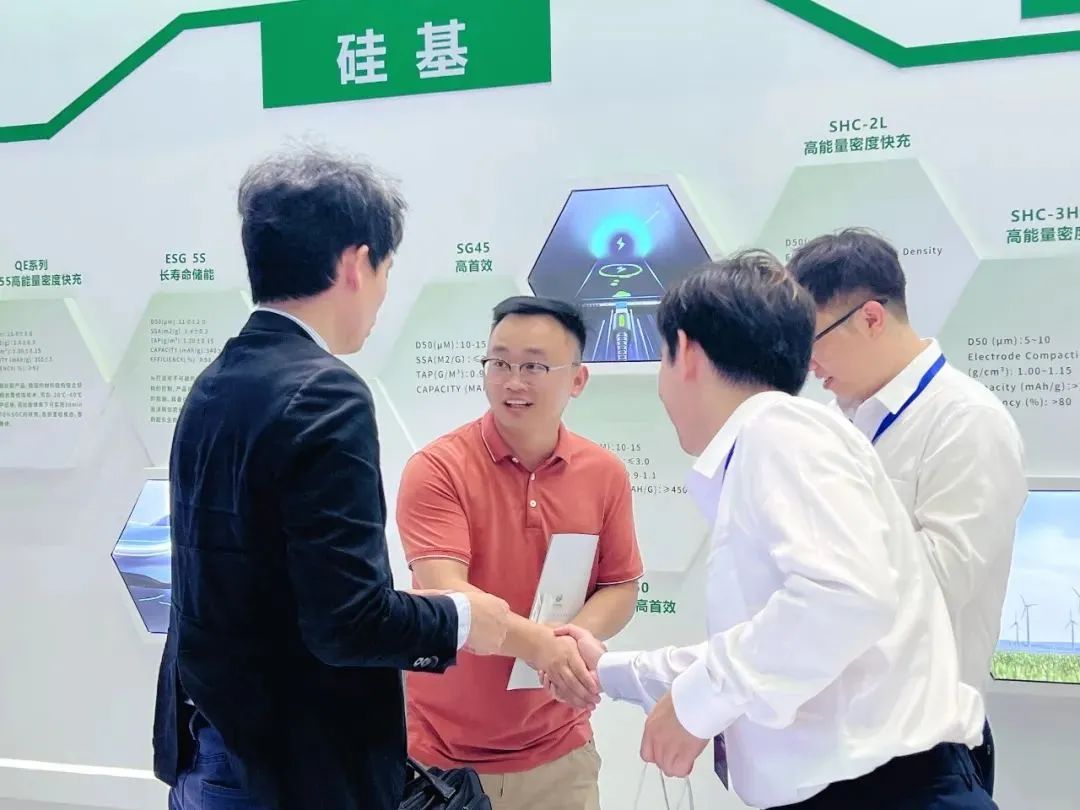 杉杉科技展位占據2號館C位,現(xiàn)場人潮涌動,交流區(qū)域一“座”難留。在為期三天的展會上,杉杉科技研發(fā)和技術骨干現(xiàn)場介紹杉杉科技自主研發(fā)的石墨、硬炭、硅基負極等重點產品,吸引眾多國內外行業(yè)專家及客戶駐足觀看交流、探討合作。