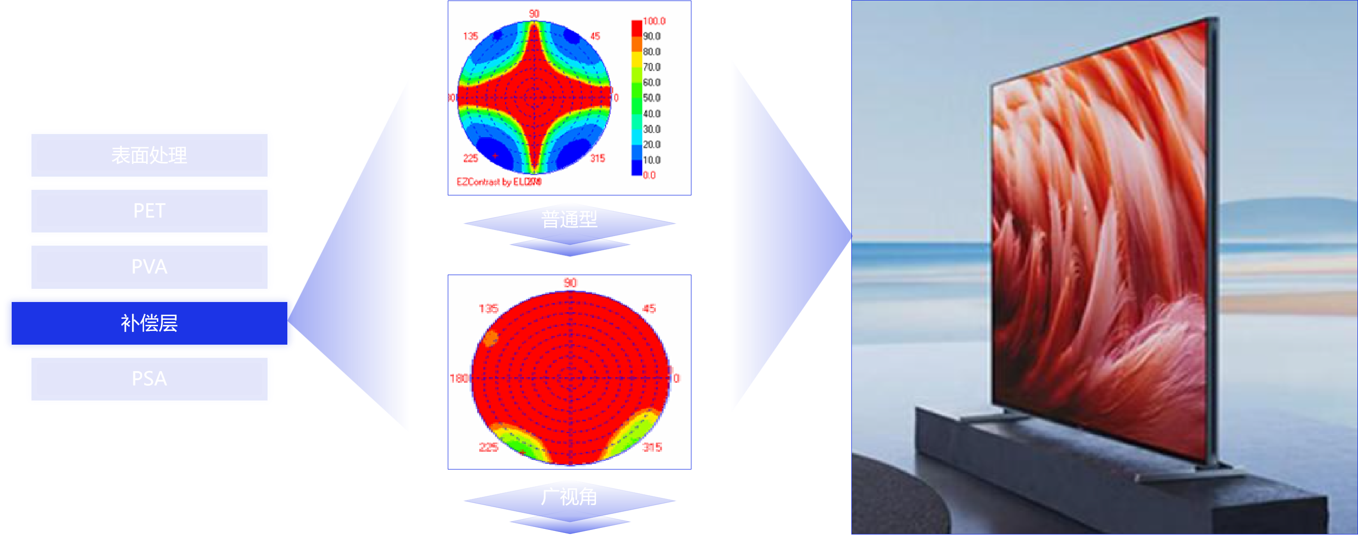 LCD偏光片一直以來(lái)就是杉金光電的強(qiáng)項(xiàng)。本屆DIC EXPO,杉金光電帶來(lái)了SLR超低反射TV偏光片、ATW-廣視角技術(shù)偏光片、VA超高透過(guò)偏光片、RF偏光片、QWP圓偏光型偏光片等多項(xiàng)優(yōu)勢(shì)產(chǎn)品,全方位展示了杉金光電在高端LCD偏光片上的強(qiáng)勁優(yōu)勢(shì)。在大尺寸偏光片方面,杉金光電填補(bǔ)了我國(guó)在大型偏光片生產(chǎn)制造項(xiàng)目的空白,并成功突破了大尺寸偏光片在高溫高濕環(huán)境中收縮漏光、強(qiáng)光環(huán)境反光等問(wèn)題,為T(mén)V等產(chǎn)品帶來(lái)了更廣的視角和更亮、更清晰的畫(huà)質(zhì)。